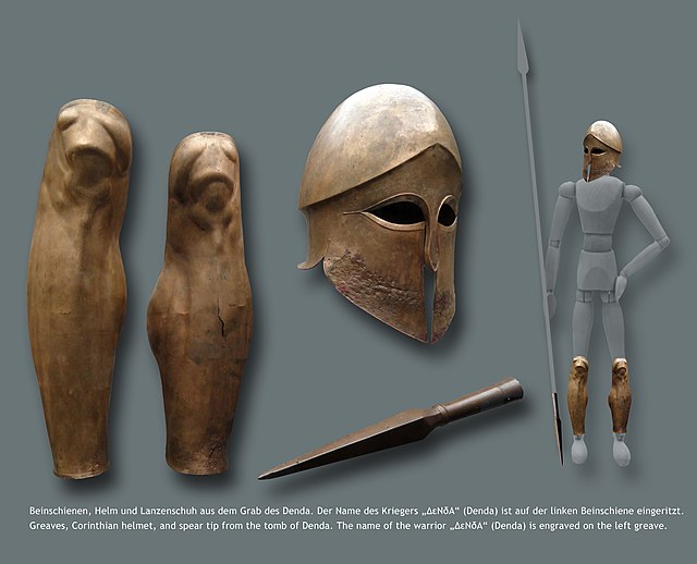 This Corinthian spearmen sported bronze greaves, a bronze helmet a bronze spear tip.